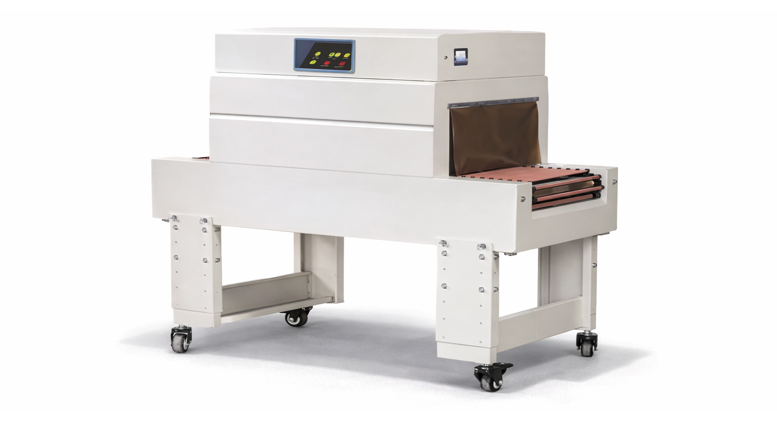 Passes film-wrapped products through a heated chamber on a conveyor belt — the controlled heat causes the film to contract tightly around the product, producing a smooth, firm finish.