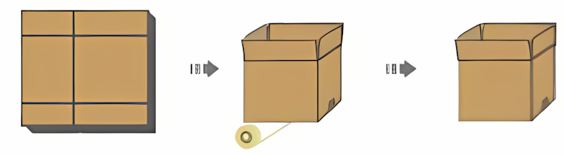 Once the carton is properly formed, the machine automatically closes the bottom flaps and seals it with tape.